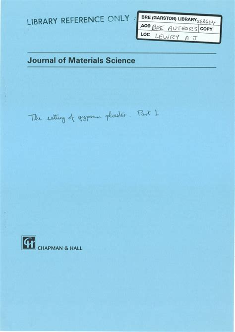 Free PDF The setting of gypsum plaster - SpringerLink PDF Book mobipocket Open Library
